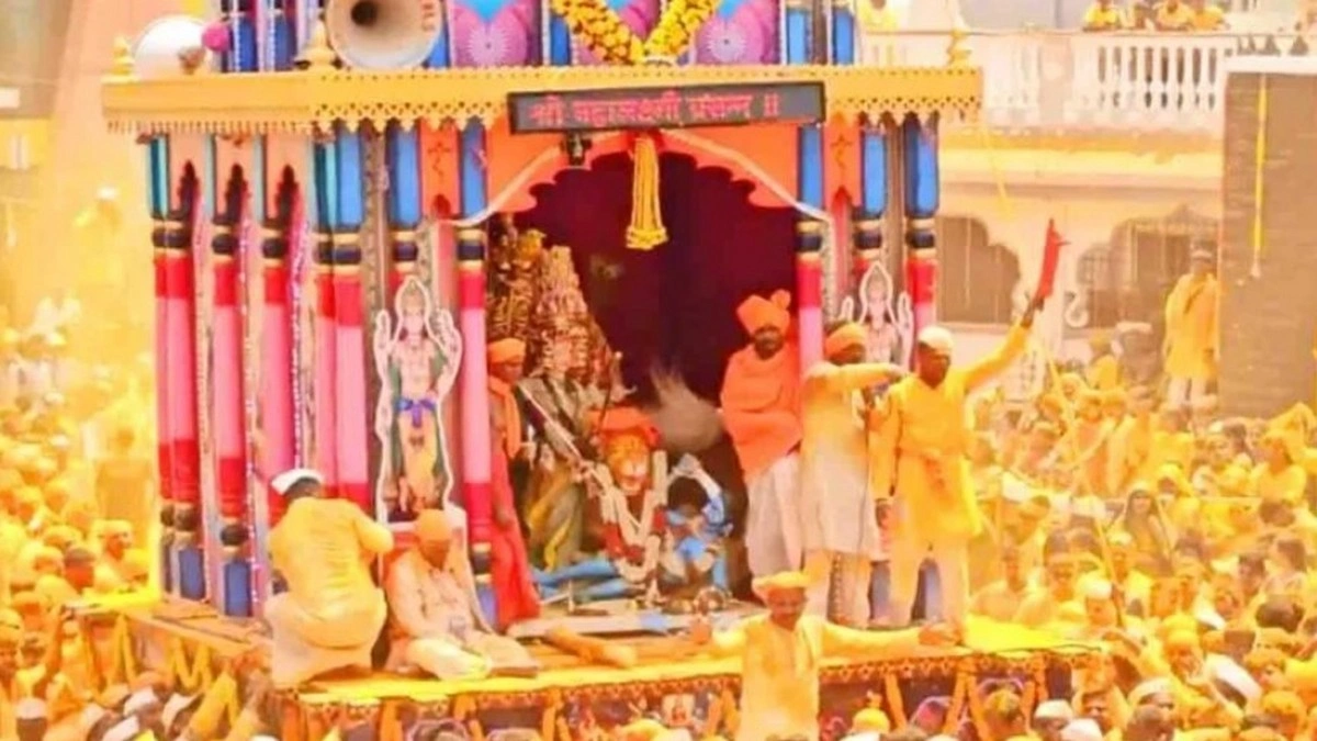 “श्री महालक्ष्मी देवीचा जयघोष” करत आणि भंडाऱ्याची उधळण करत हजारो भक्तांनी रथ ओढला. यावेळी भाविकांनी रथावर खारीक, खोबरे व केळी उधळून पारंपरिक पद्धतीने सहभाग नोंदविला.